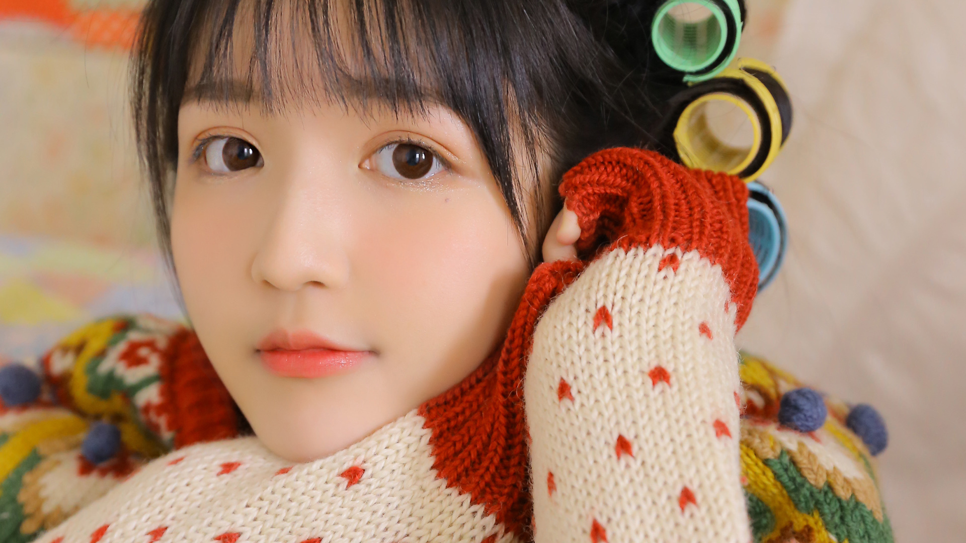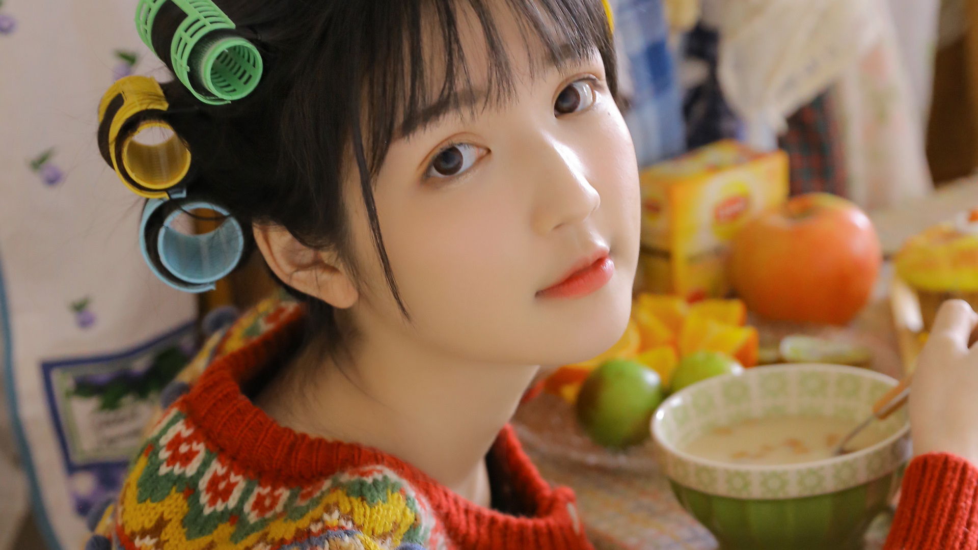 欧美女神 金发 红毛衣