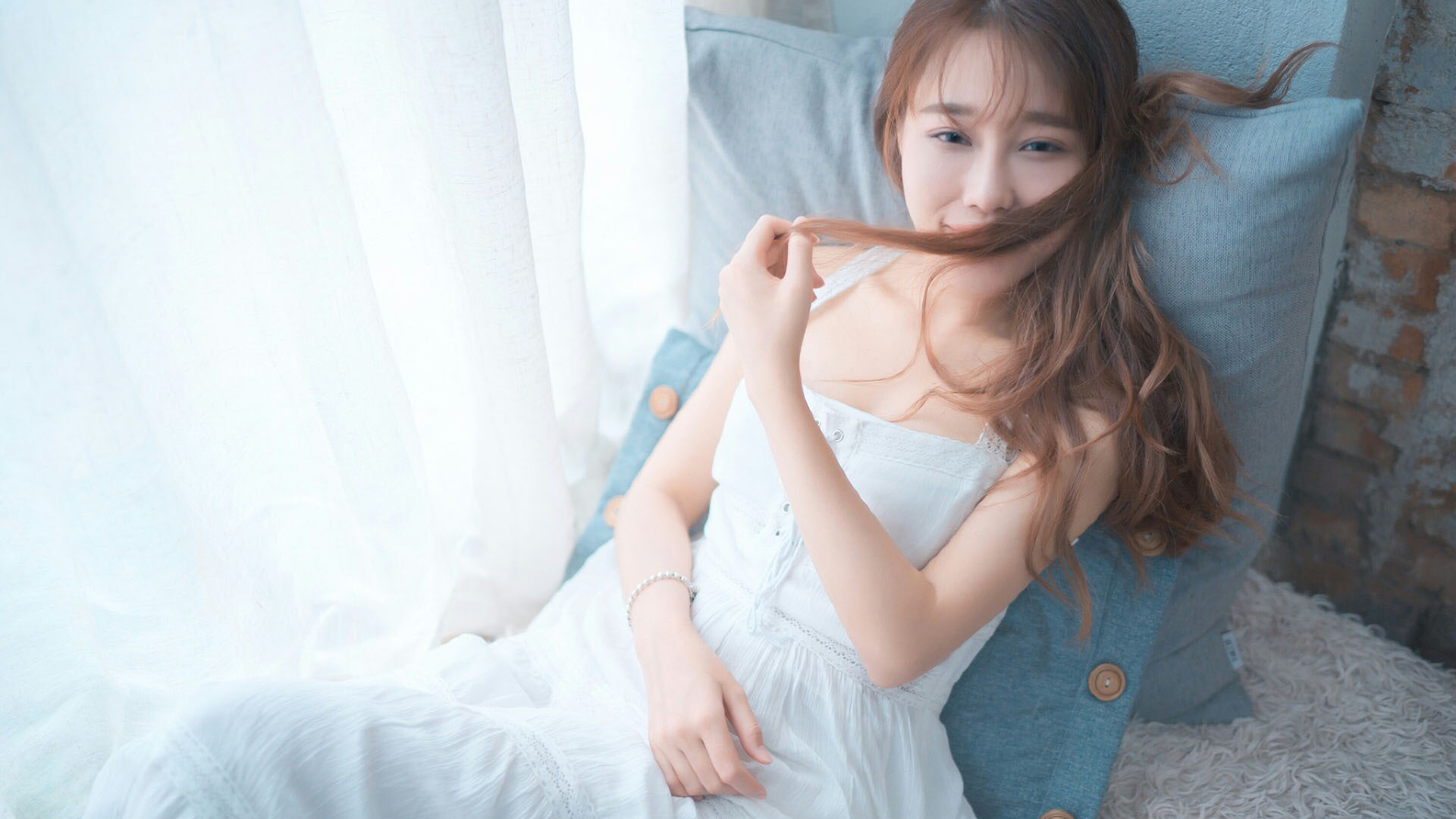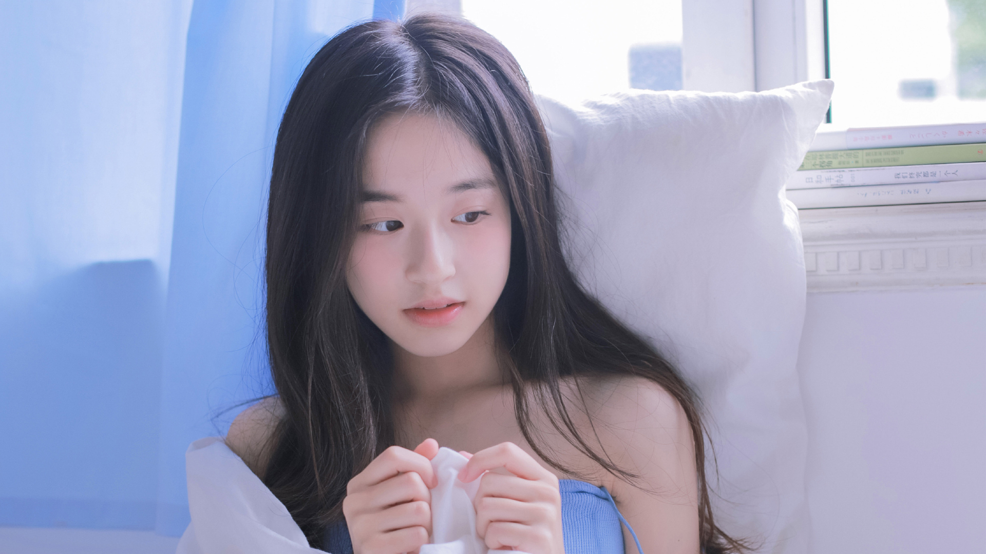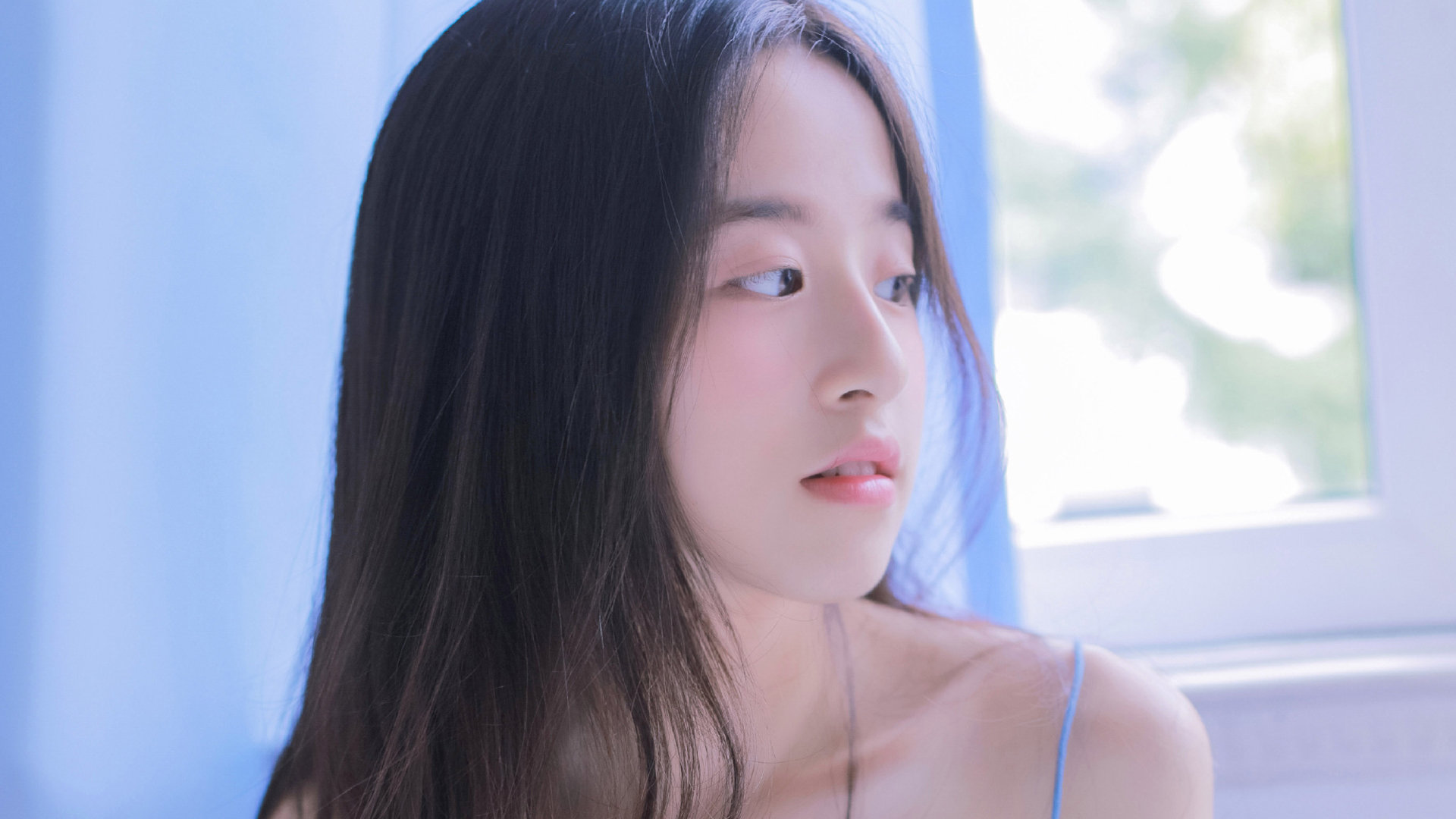 清纯 白皙美丽 吊带 长发