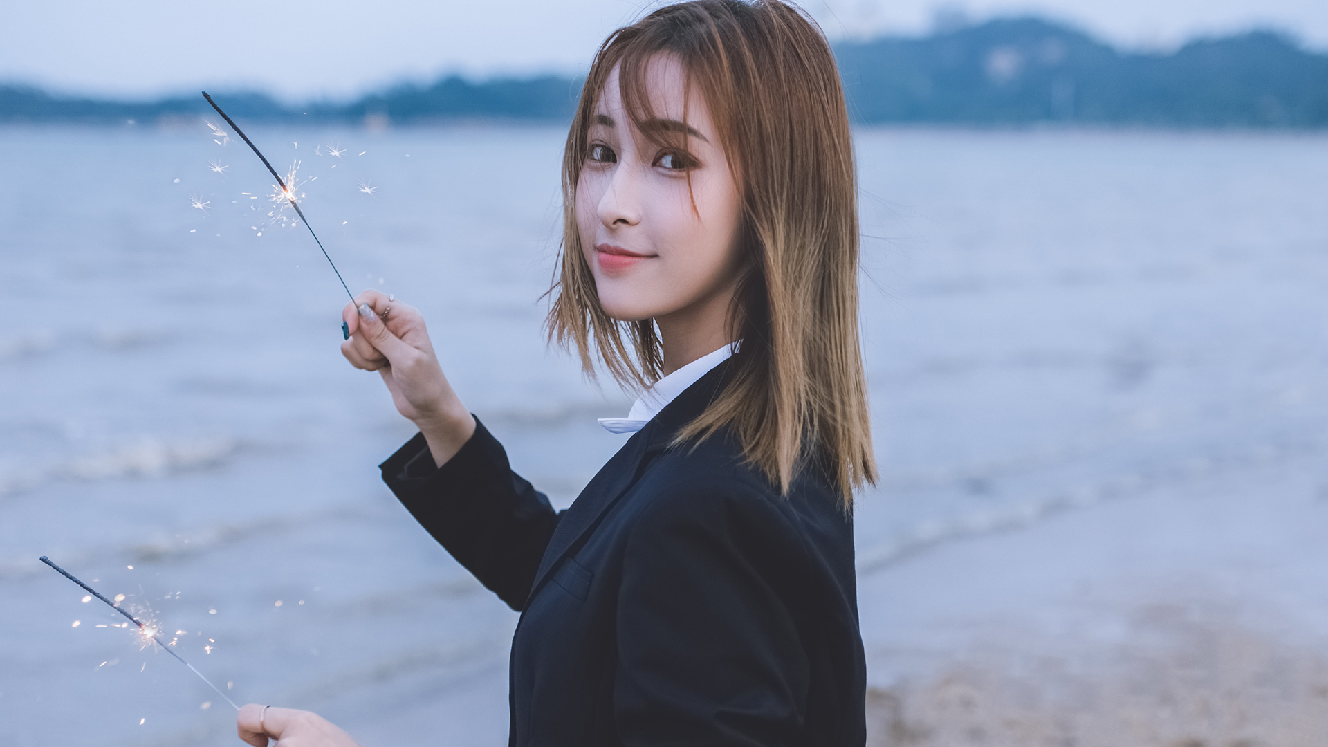 清纯 短发俏皮丸子头少女