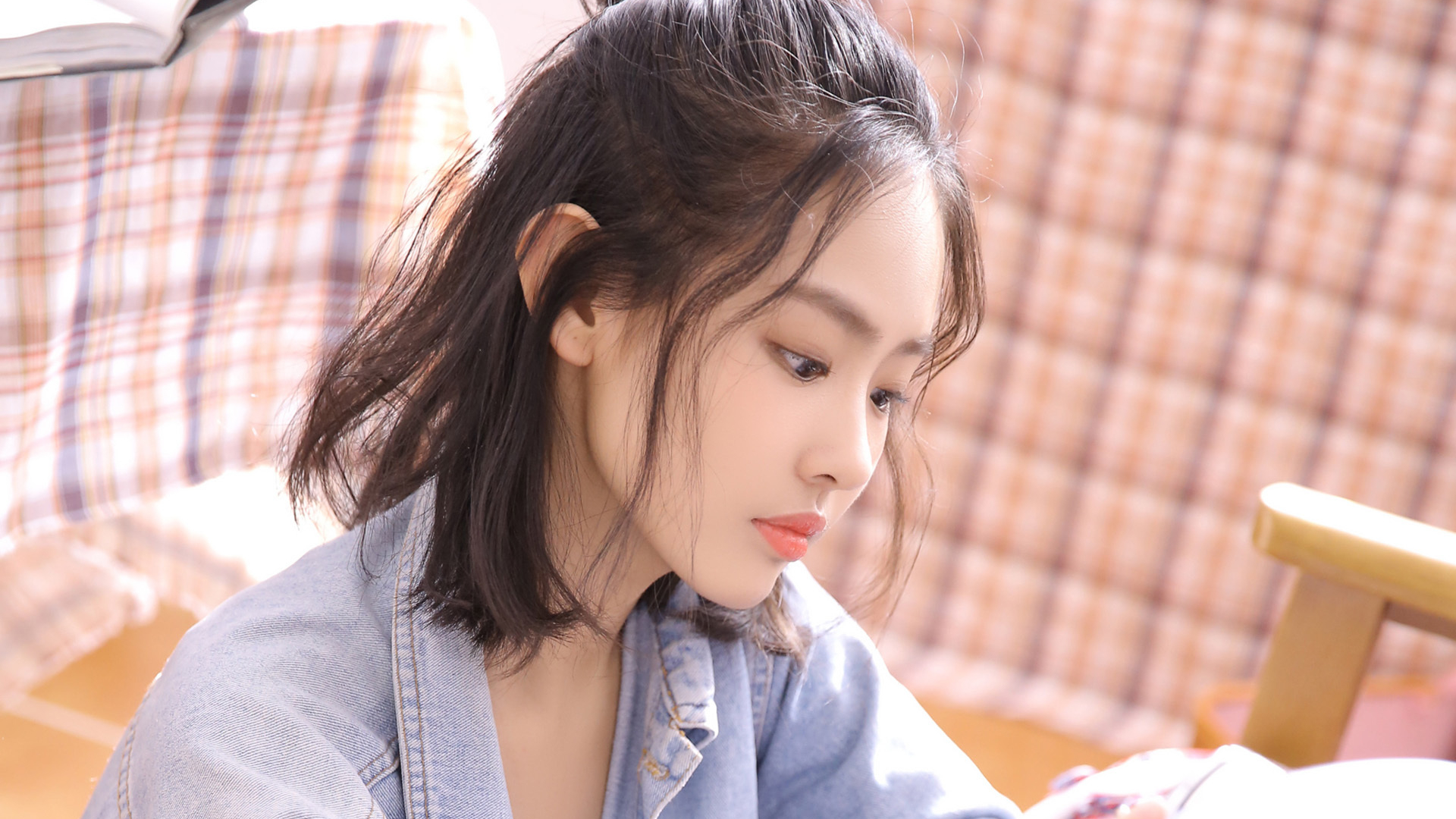 清纯 牛仔衬衣美女性感