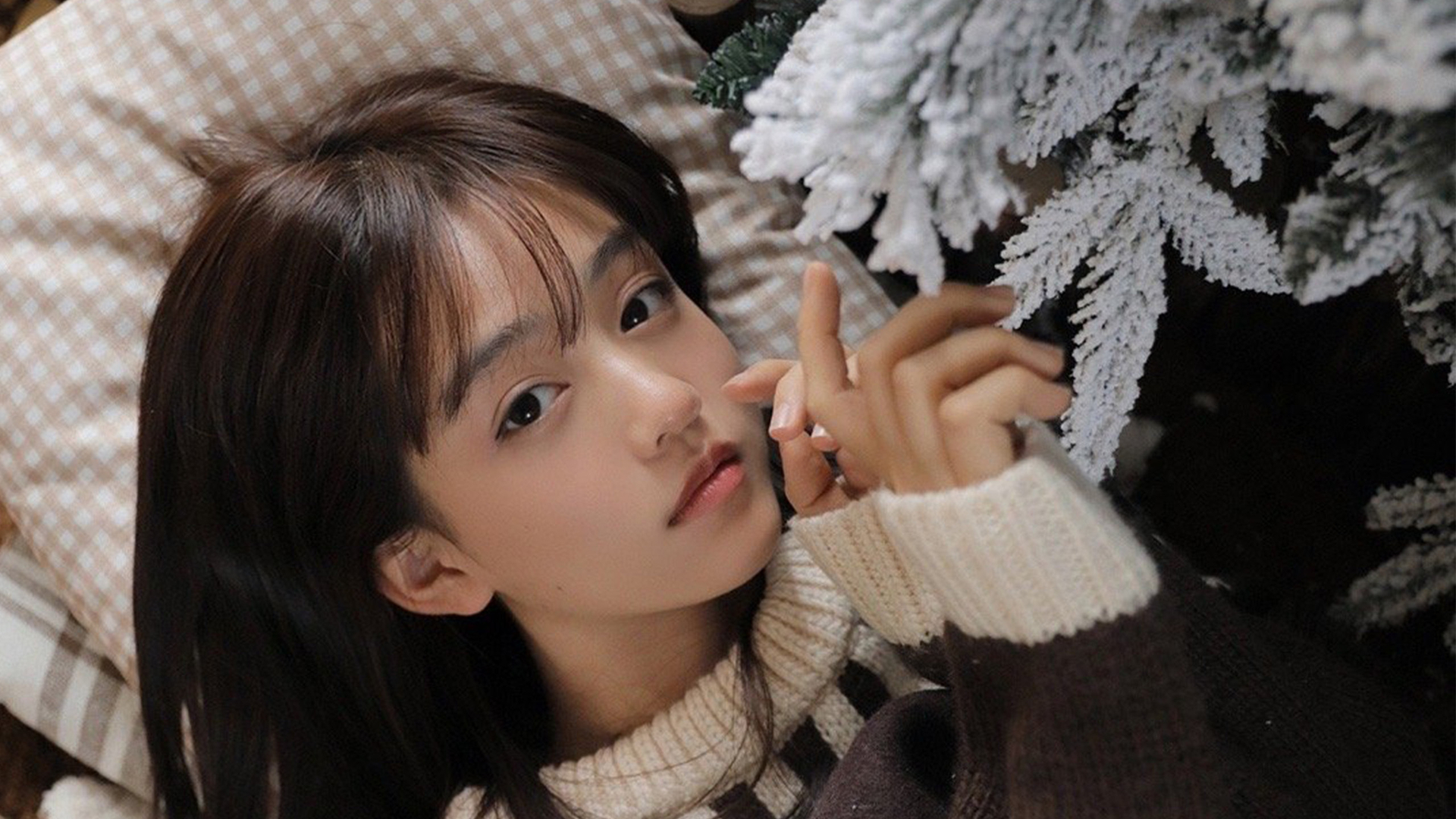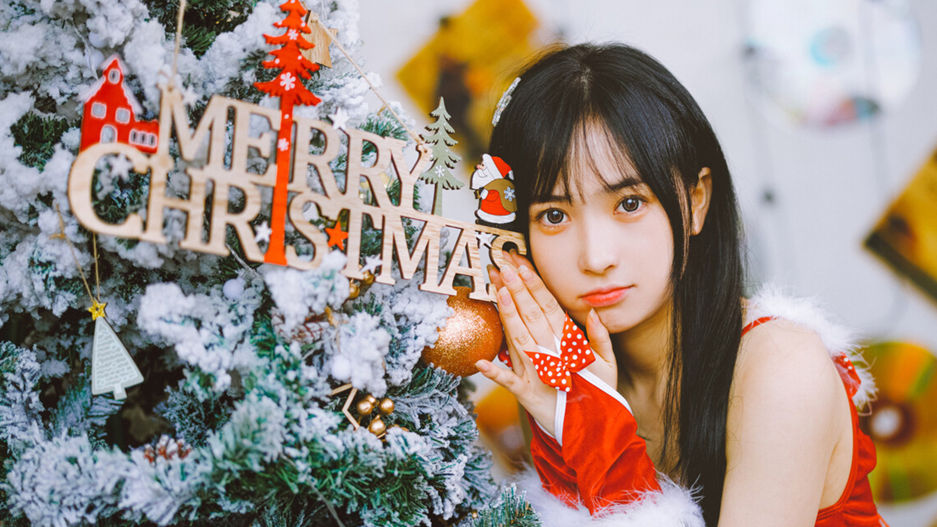 清纯 圣诞节 圣诞树 长发 可爱