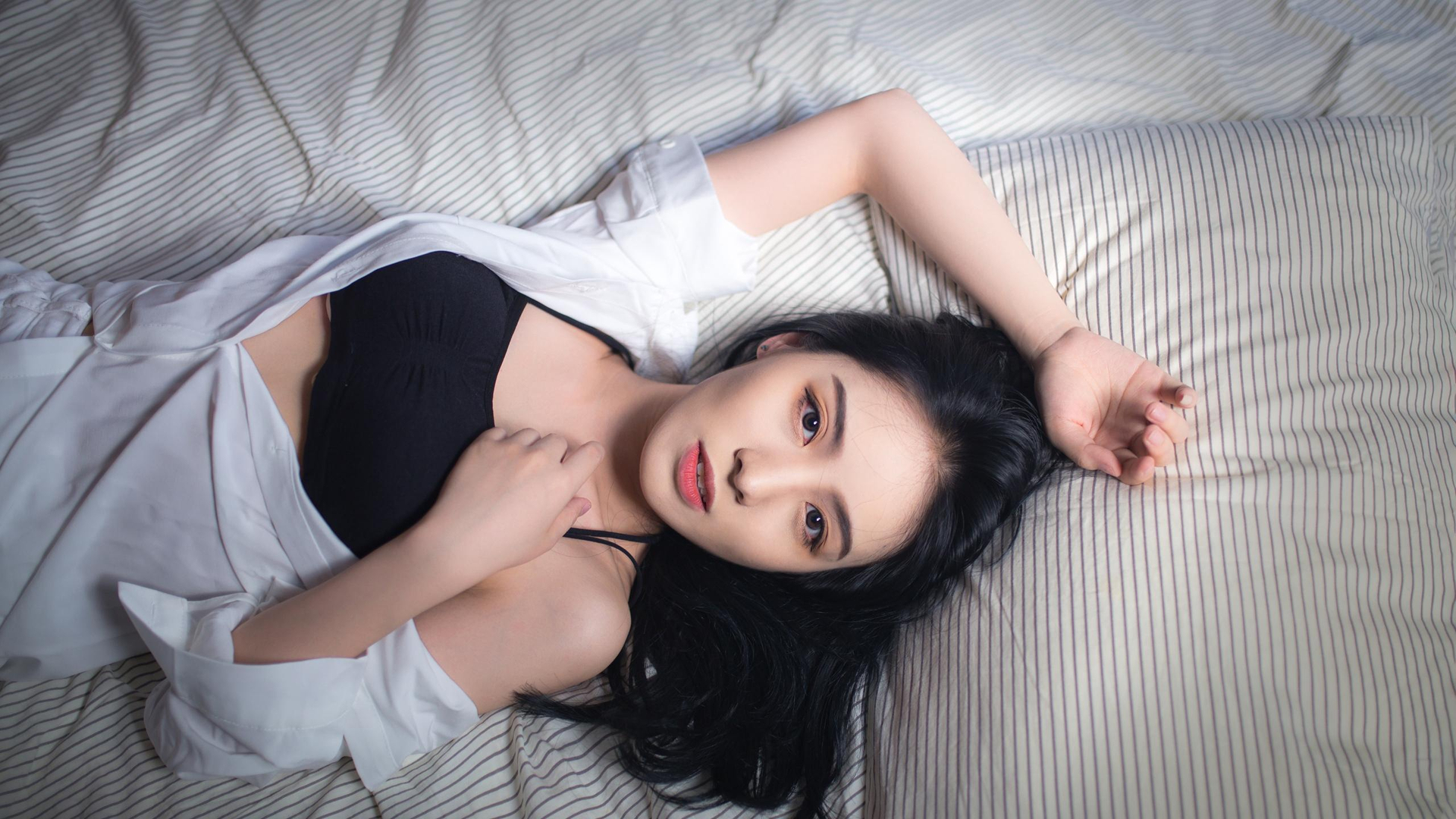性感女神 吊带 袜子 居家 刘海