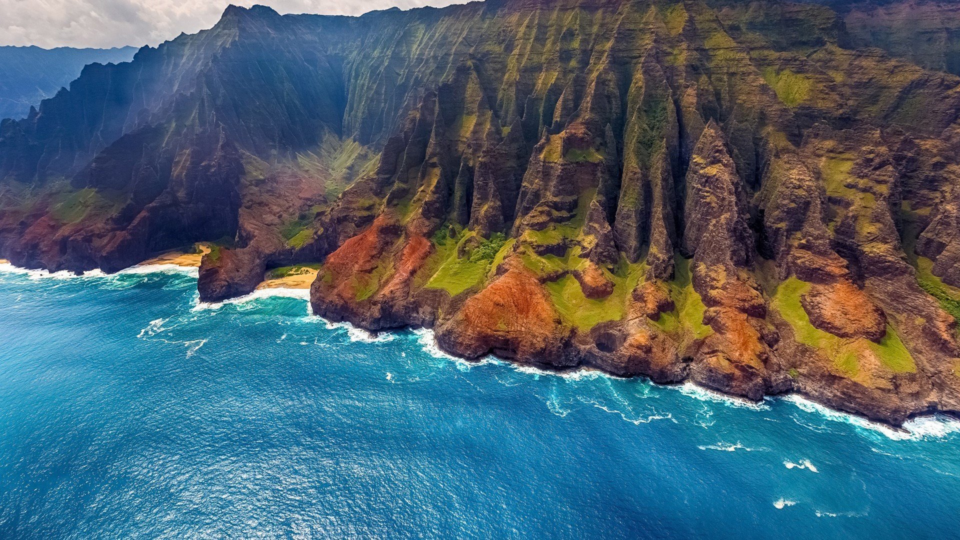 海洋天堂 夏威夷 海岸 山脉 海浪 航拍