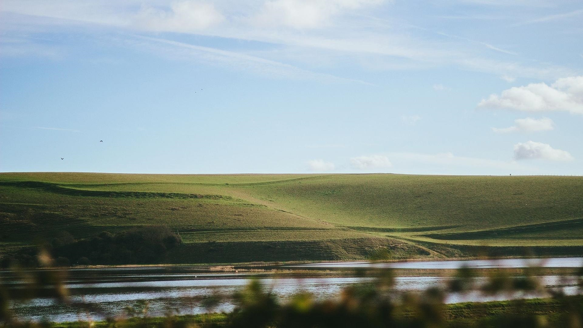 自然风光 大江 草原 天空 江岸