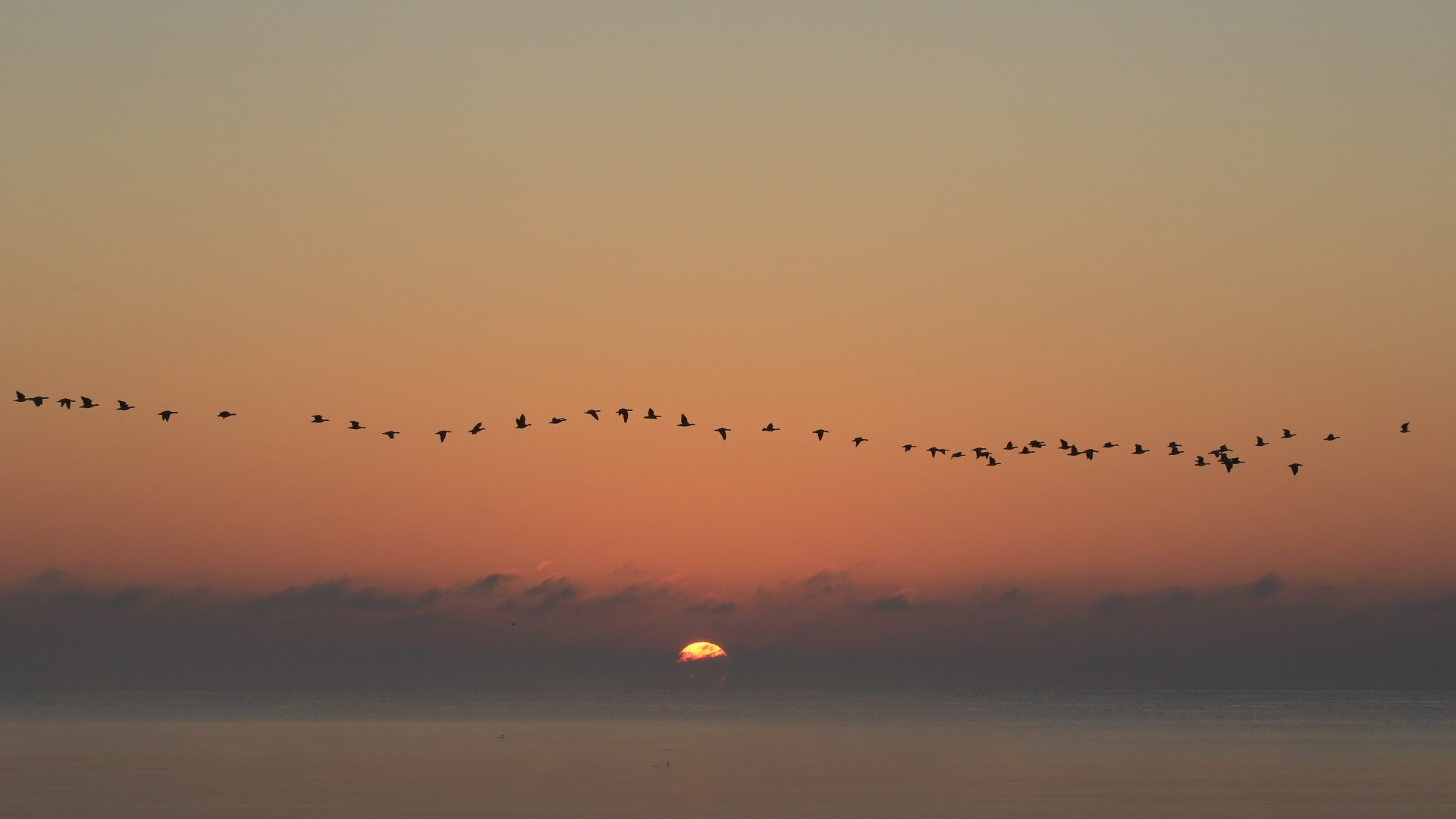 落日余晖 大雁 太阳 一行白鹭