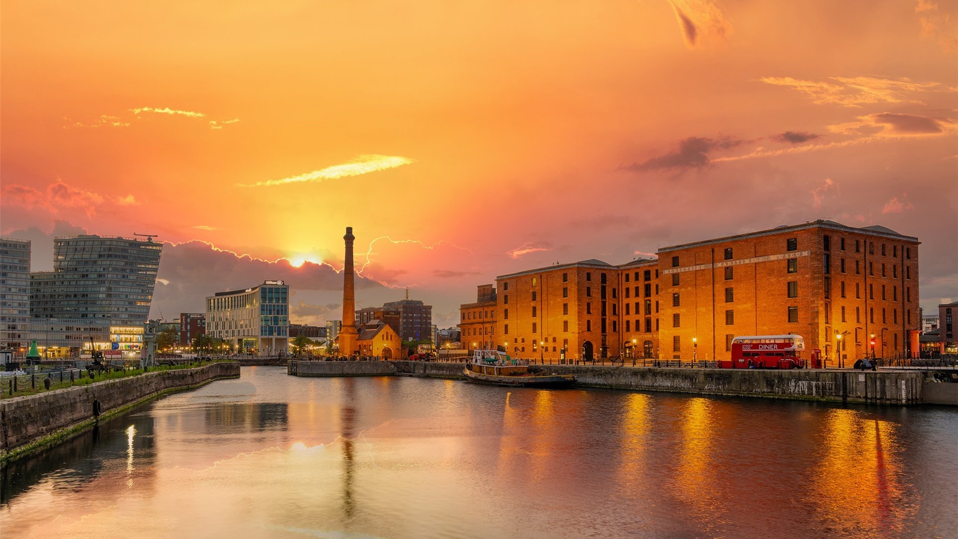 城市夜景 黄昏 晚霞 红霞 利物浦