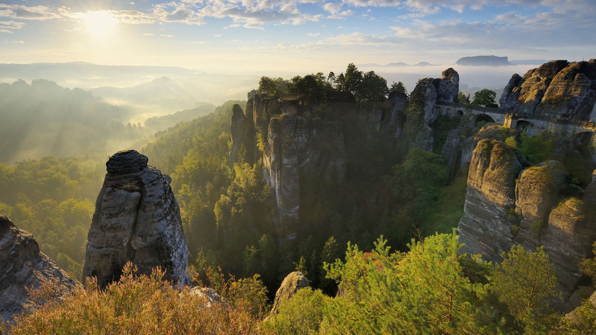 自然风光 阳光 山峰 桥梁