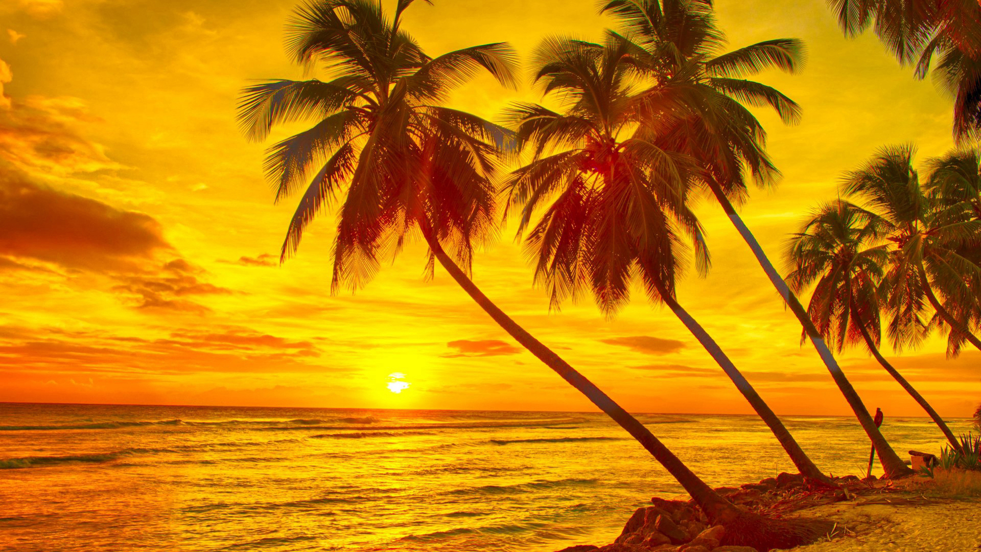 秋意正浓 夕阳 椰树 大海