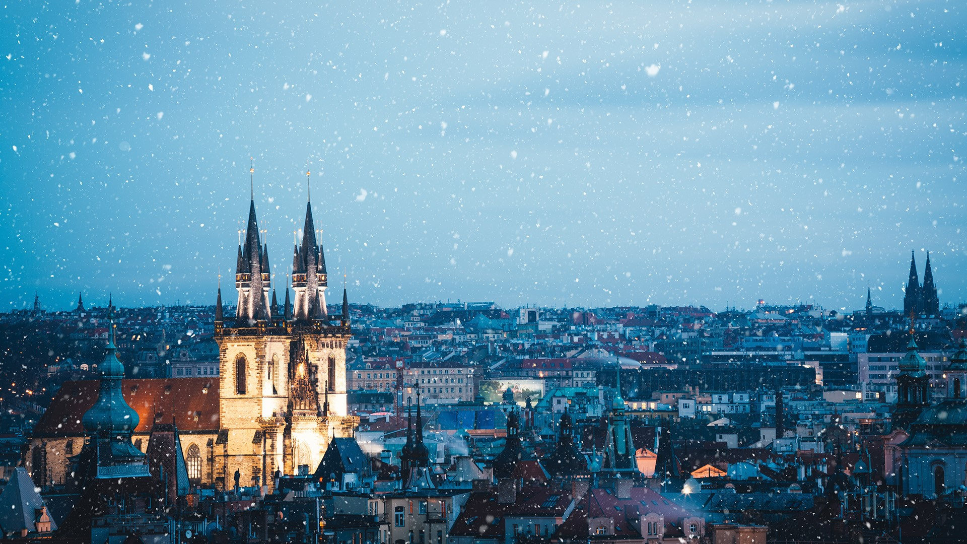 城市夜景 雪夜 钟楼 欧式建筑