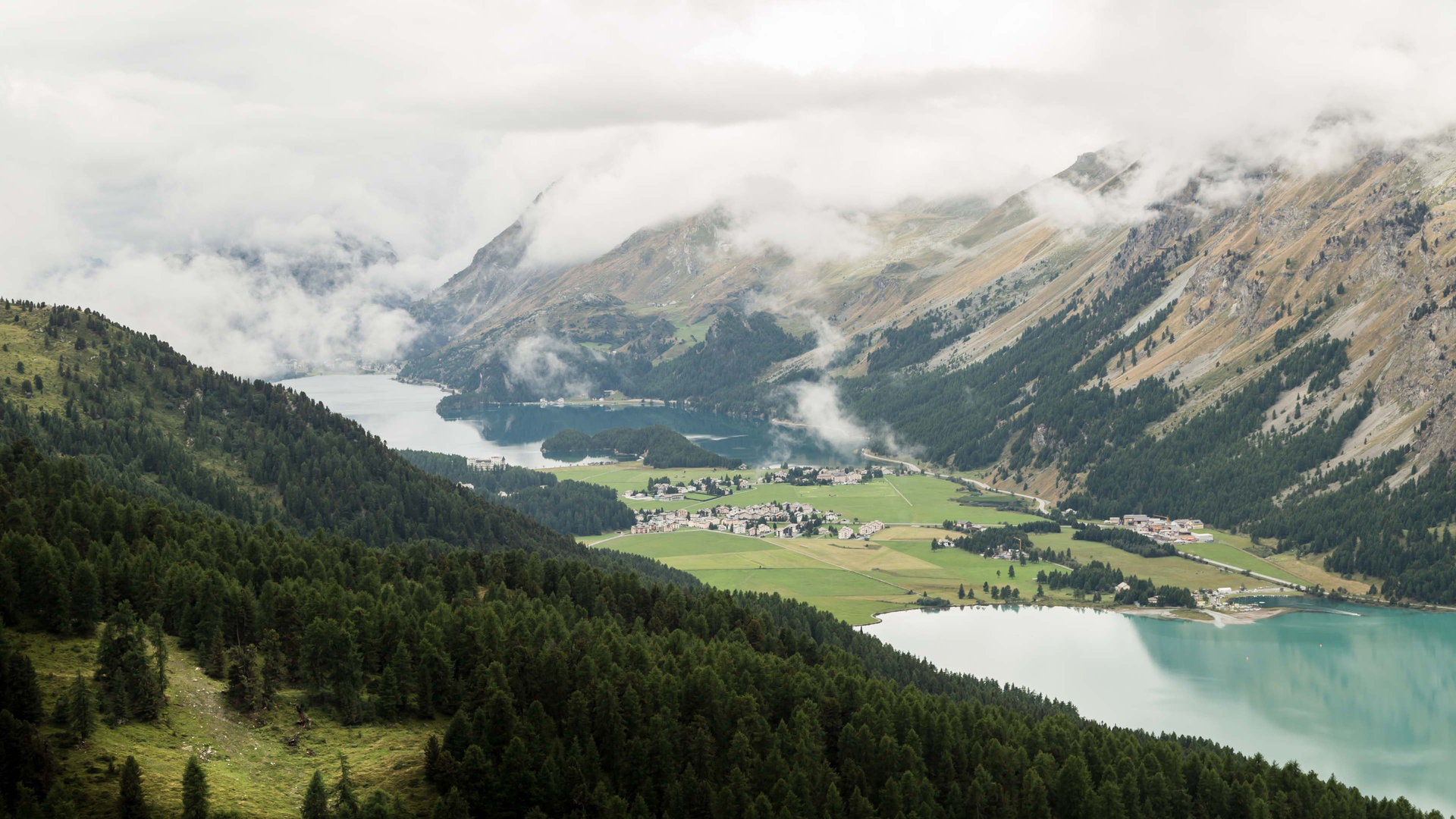 山涧 村庄 雾 树林