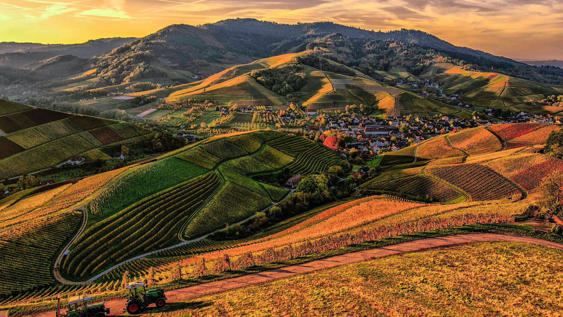 秋意正浓 黄昏 丘陵的村庄