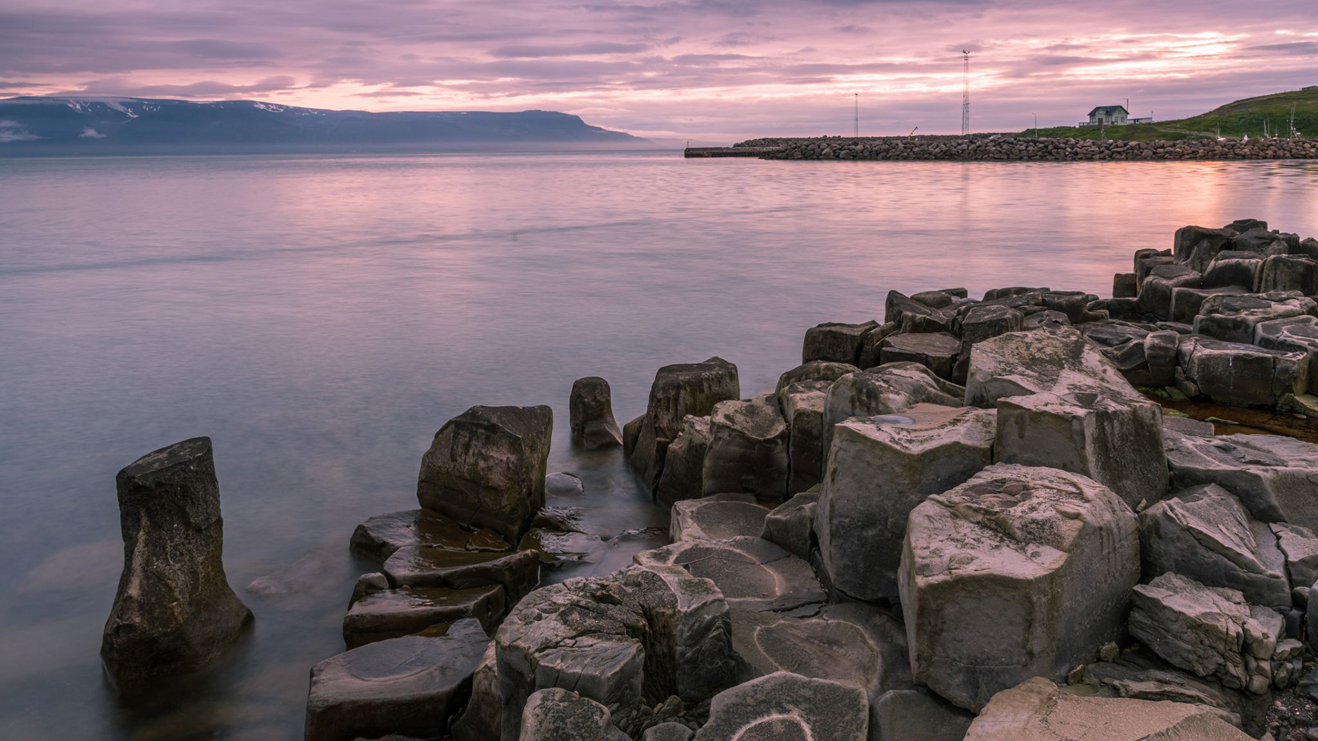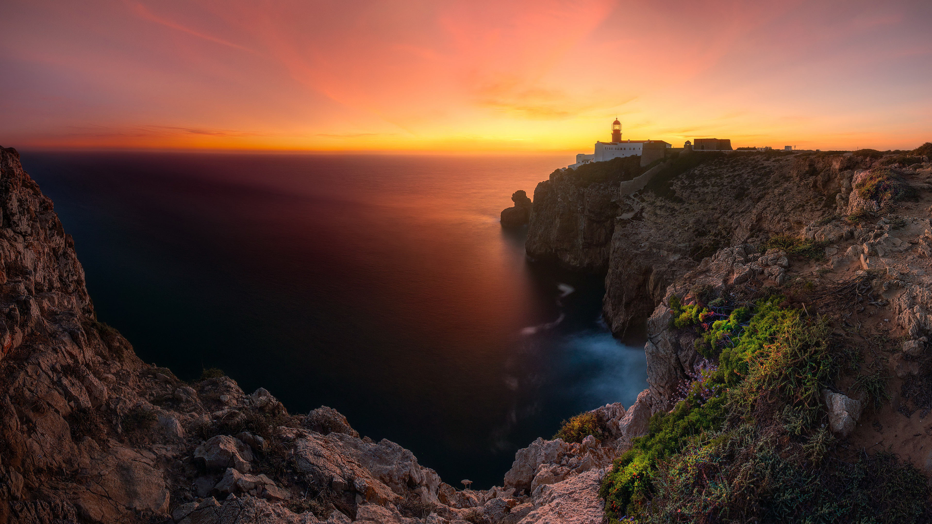 落日余晖 灯塔 悬崖 海岸 红霞