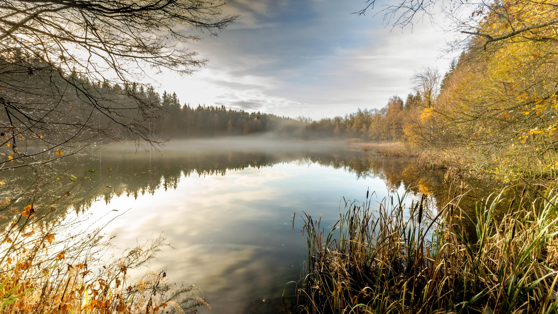 秋意正浓 雾 倒影 清晨