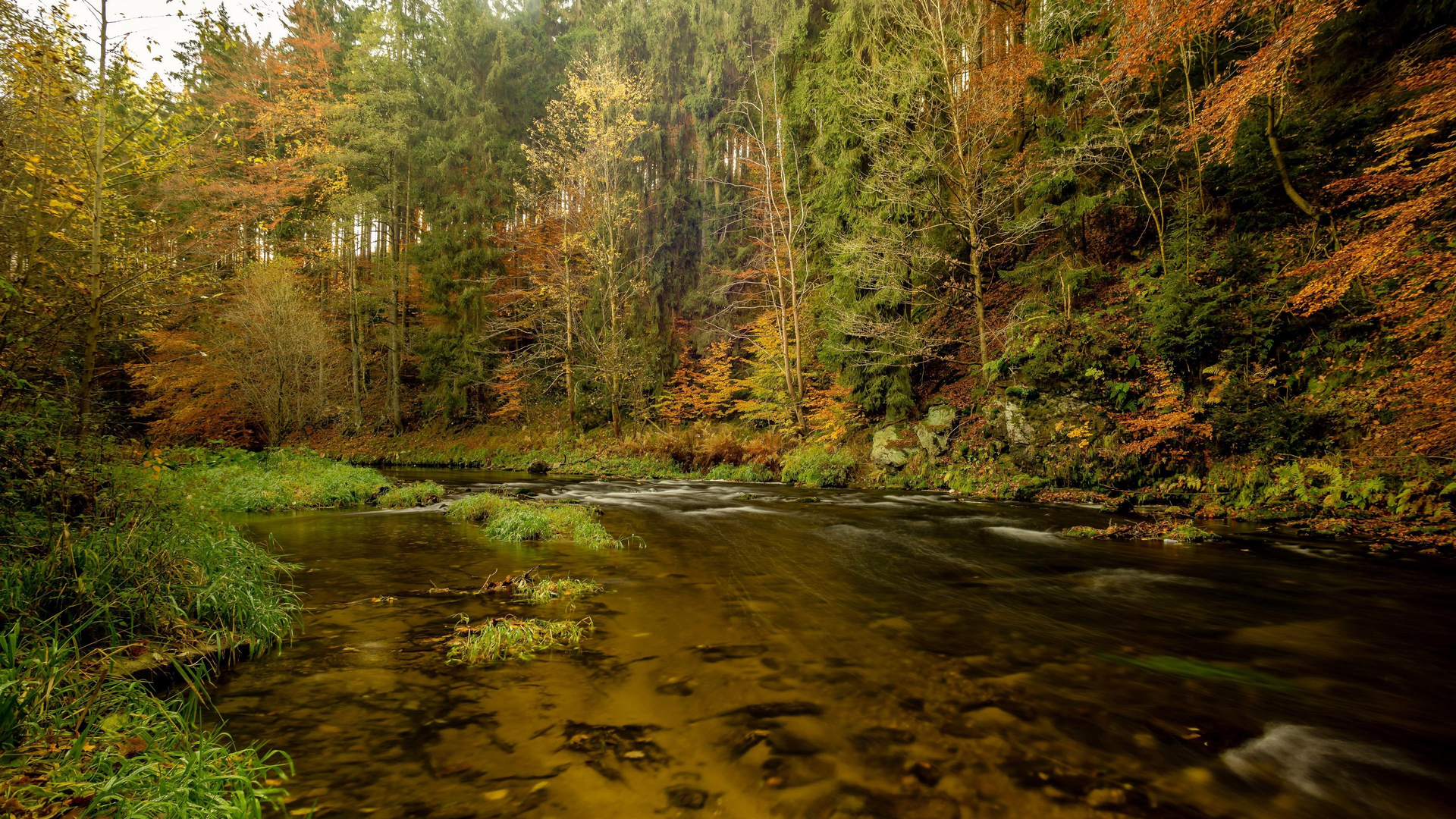 秋意正浓 河流 树林 波涛