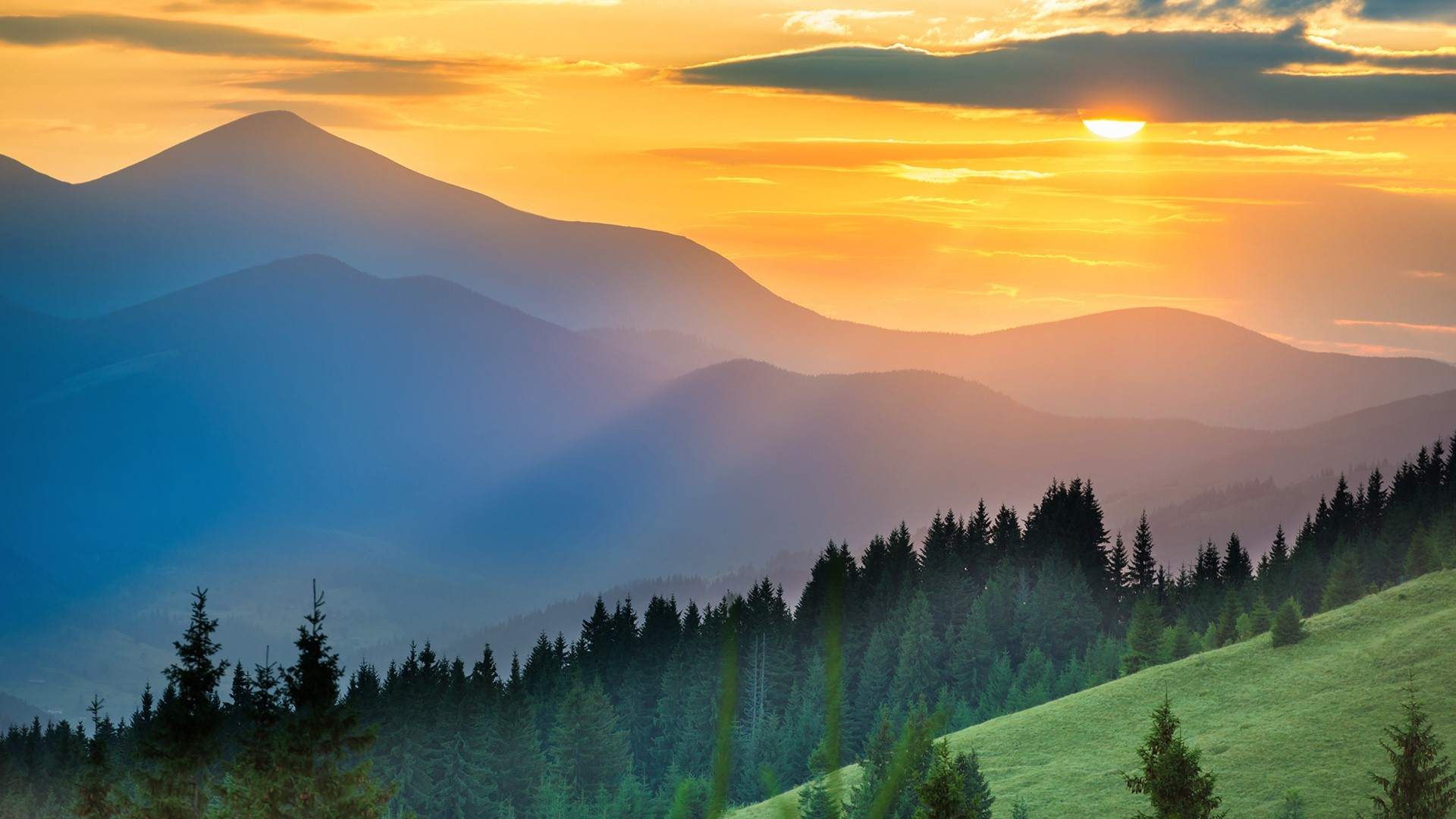 自然风光 日出 树林 山坡