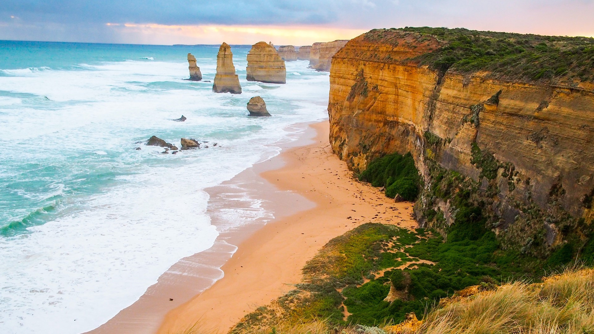 海洋天堂 草地 海浪 礁石