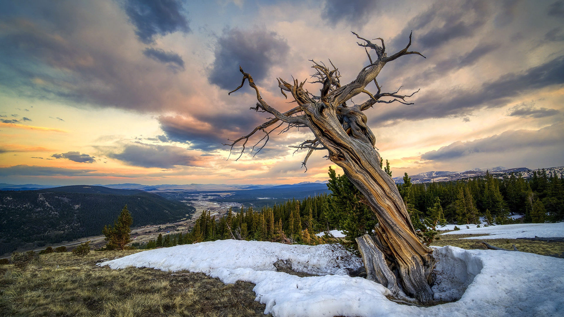 自然风光 枯树 晚霞 冰雪