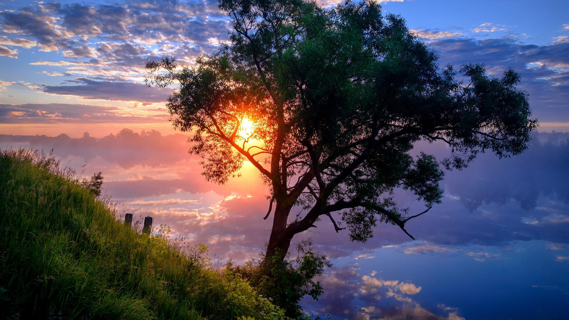 落日余晖 河流 夕阳 晚霞