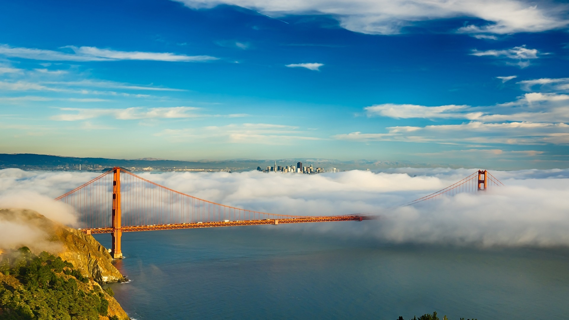 蓝天白云 旧金山 桥 云海