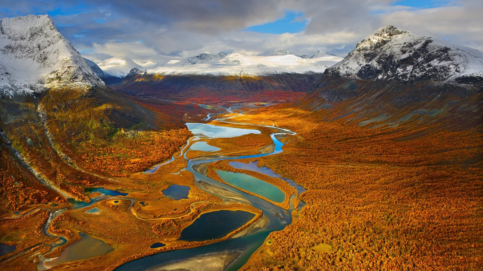 秋意正浓 航拍 红树林 雪山