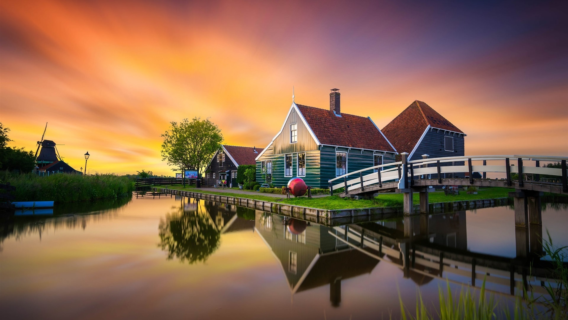 落日余晖 欧洲小镇 小桥 晚霞