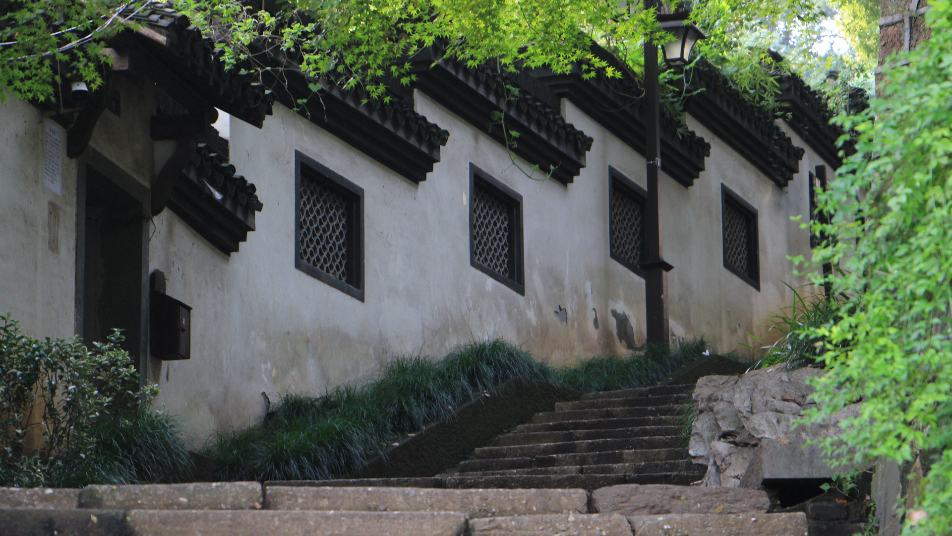 城市夜景 中式建筑 台阶 院墙