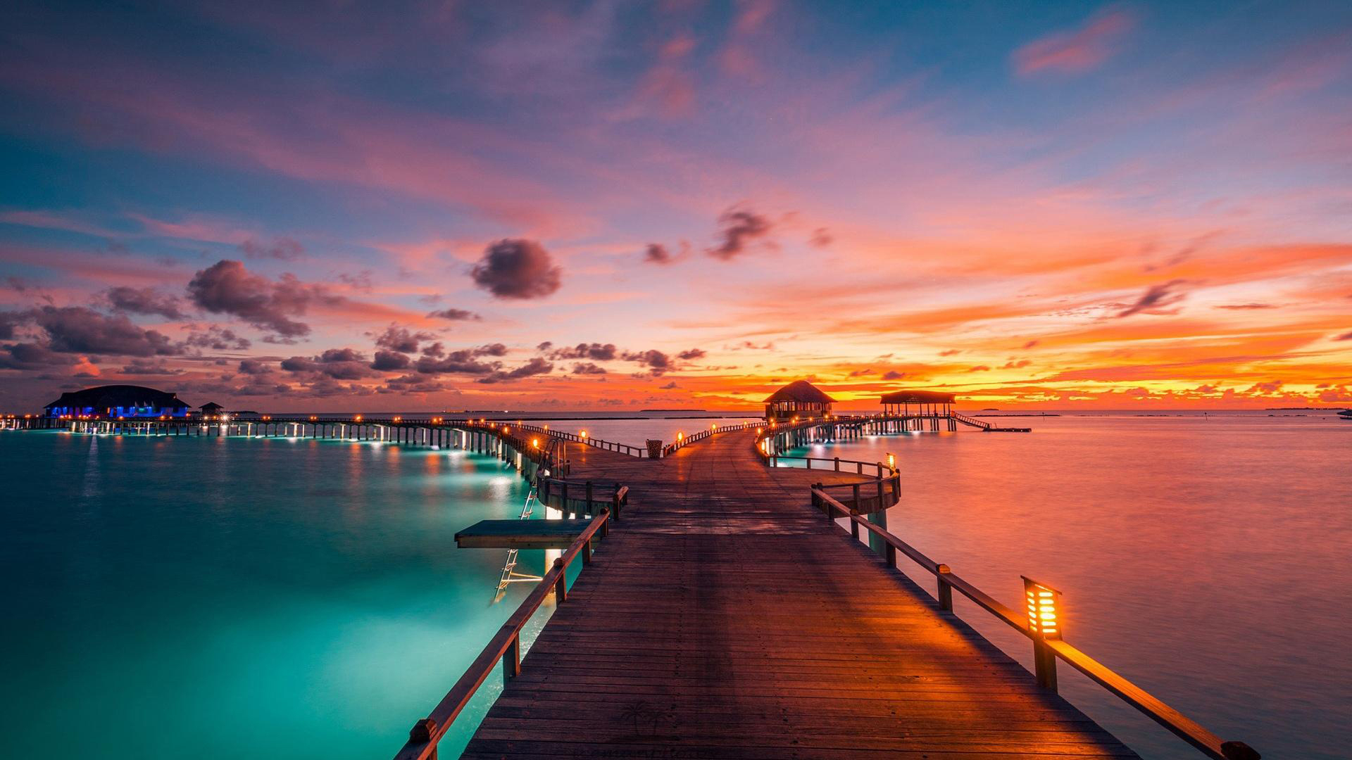 城市夜景 晚霞 度假村