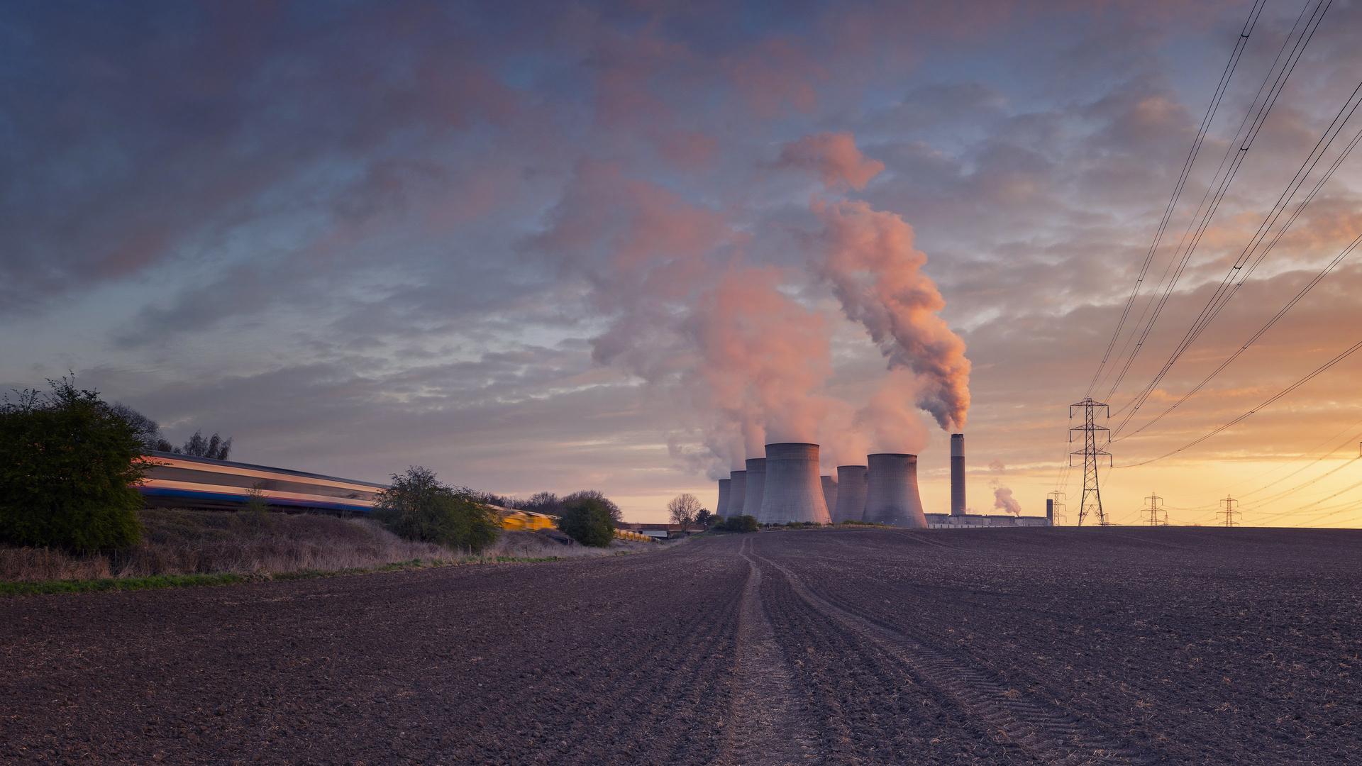 城市夜景 烟囱 晚霞 电线杆